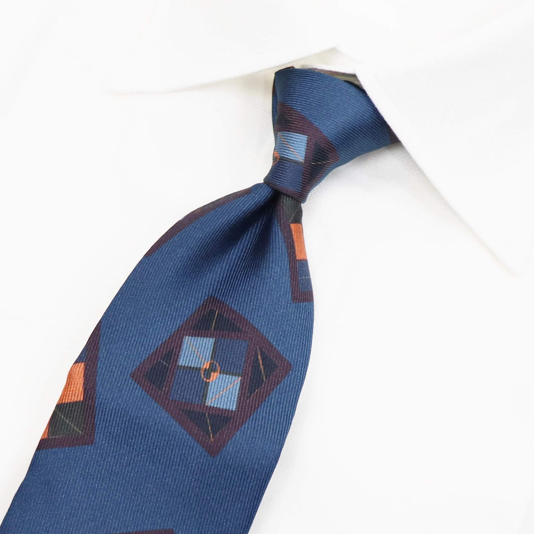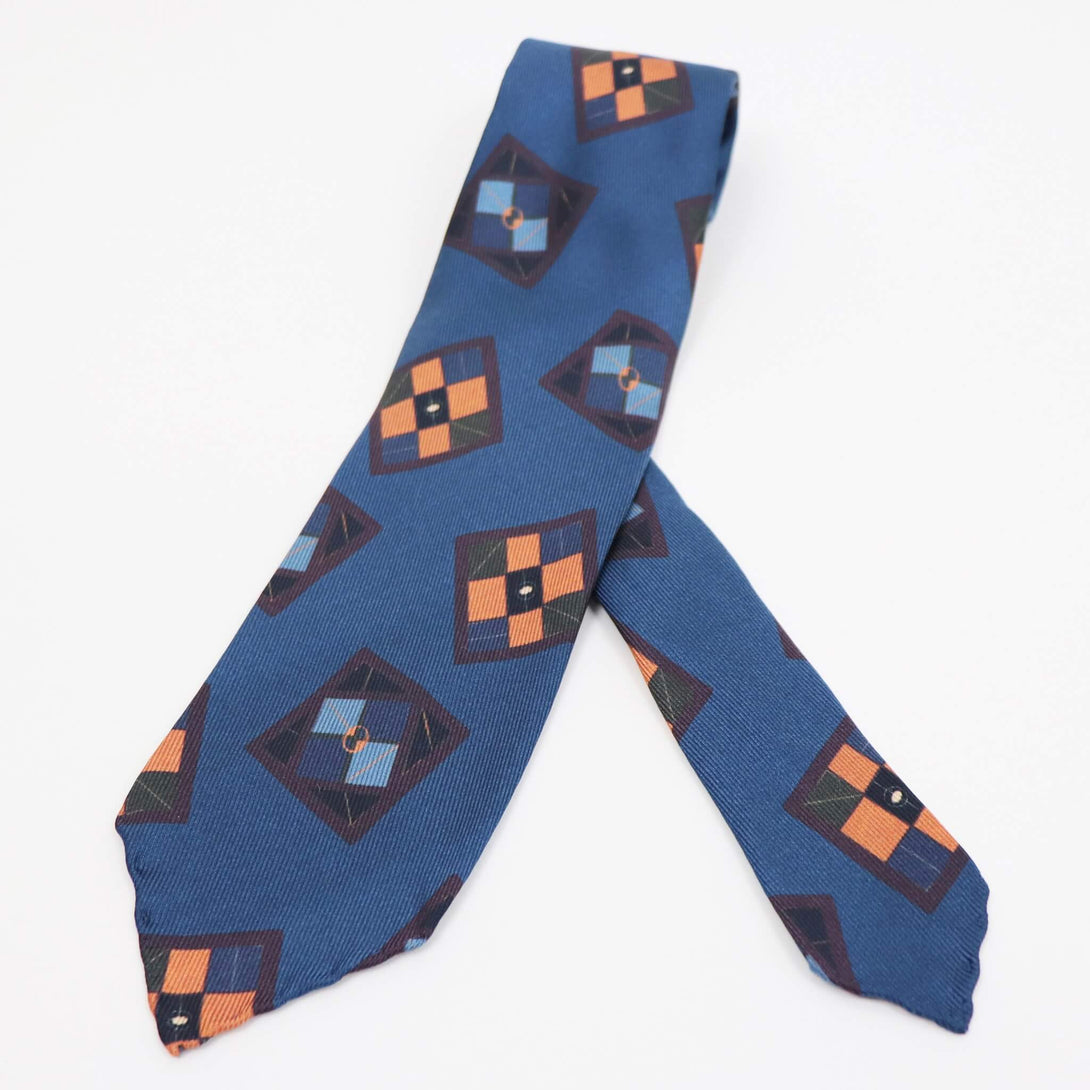 シルク100%生地が使われ、トレピエゲ(3つ折りネクタイ)仕様。適度なハリがありスカーフのように軽い締め心地と優雅さが最大の特徴です。