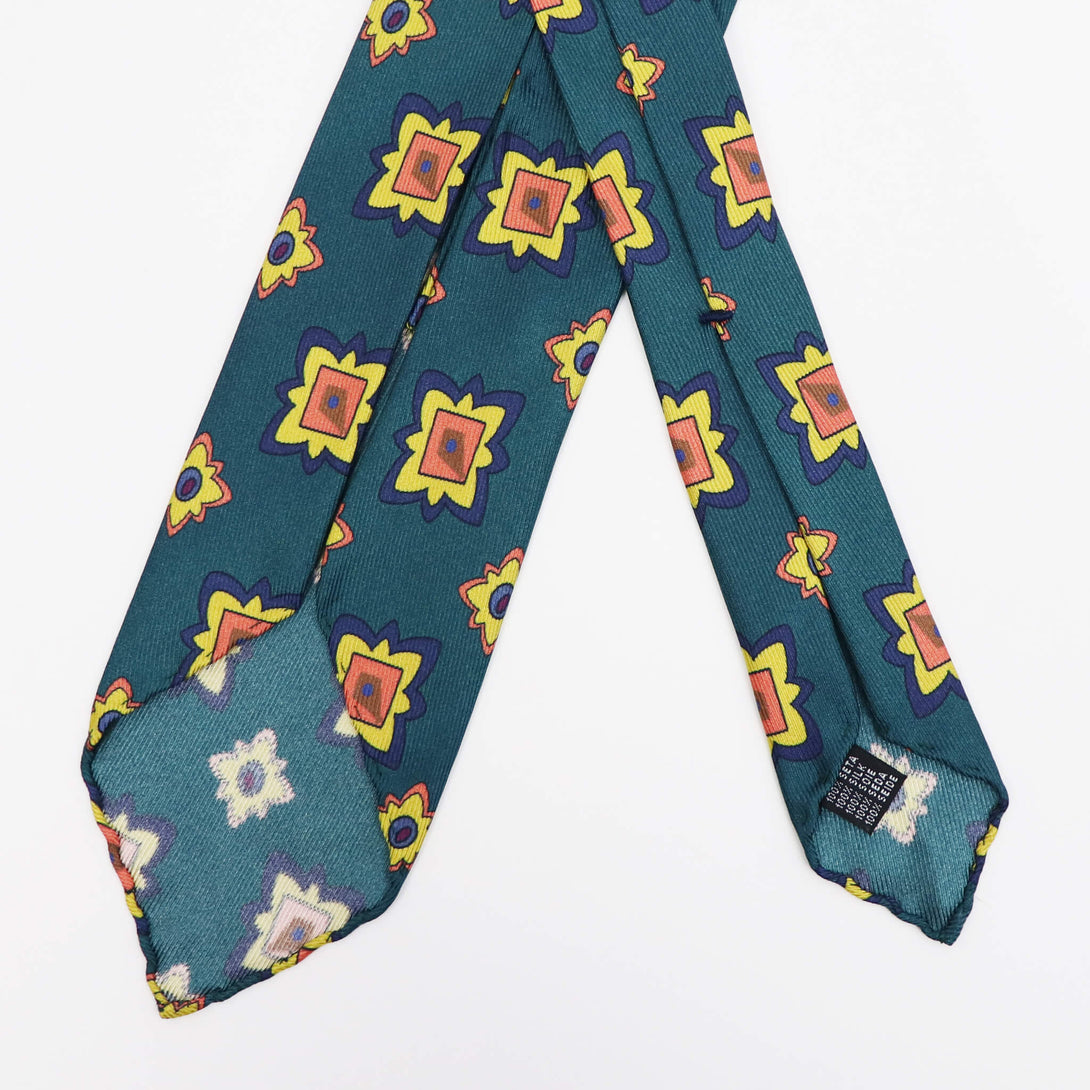 シルク100%生地が使われ、トレピエゲ(3つ折りネクタイ)仕様。適度なハリがありスカーフのように軽い締め心地と優雅さが最大の特徴です。