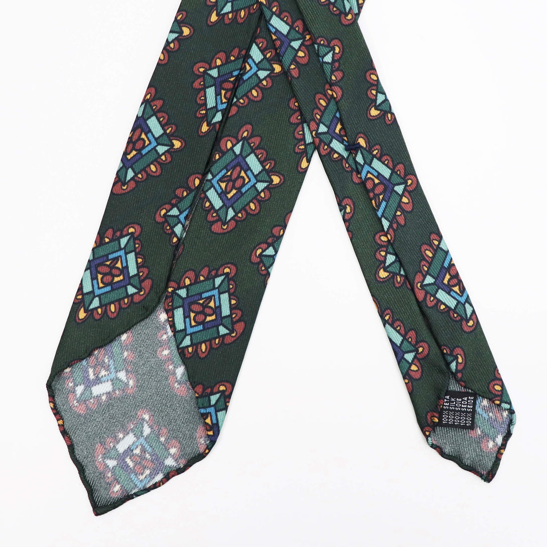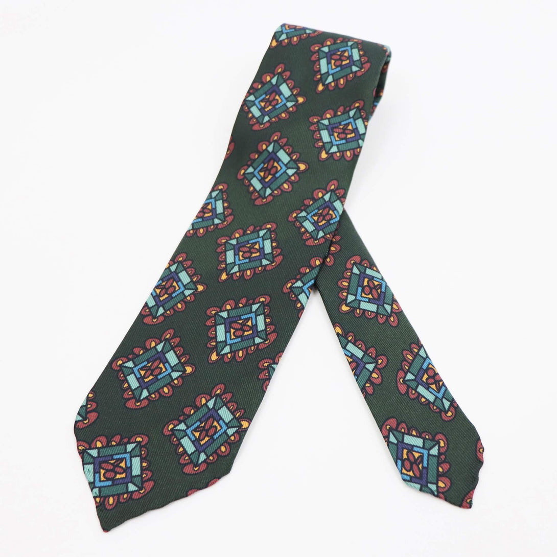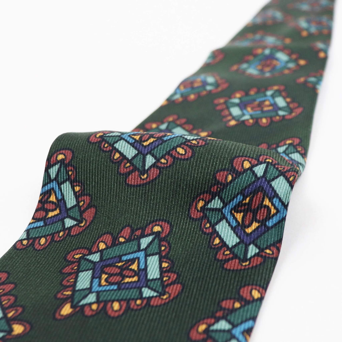 シルク100%生地が使われ、トレピエゲ(3つ折りネクタイ)仕様。適度なハリがありスカーフのように軽い締め心地と優雅さが最大の特徴です。