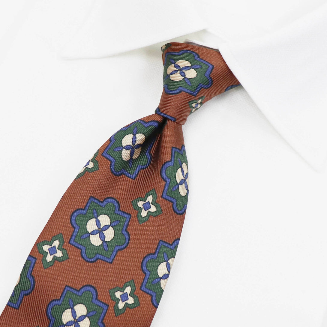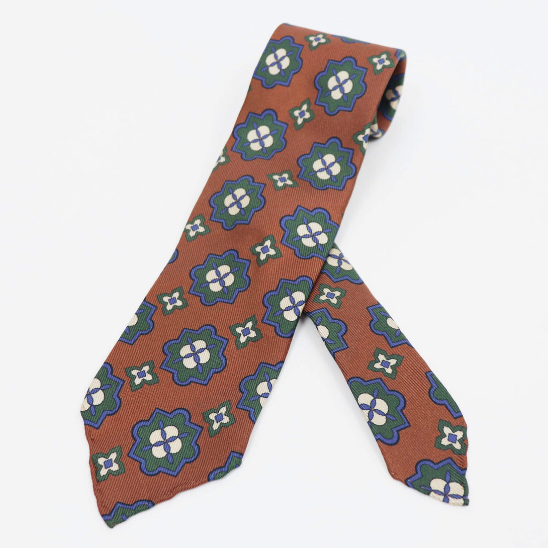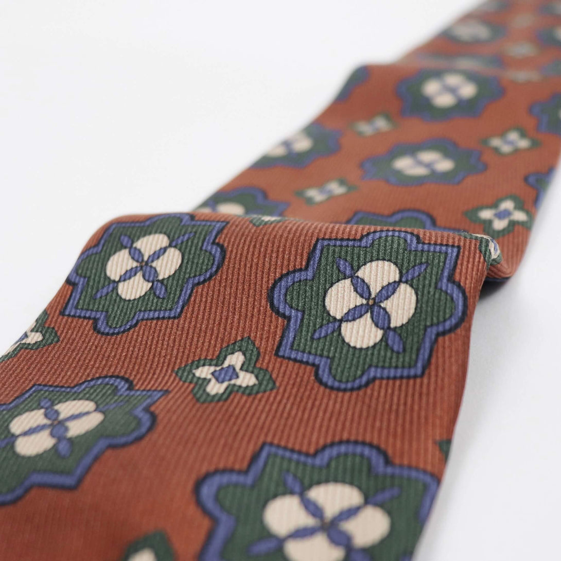 シルク100%生地が使われ、トレピエゲ(3つ折りネクタイ)仕様。適度なハリがありスカーフのように軽い締め心地と優雅さが最大の特徴です。