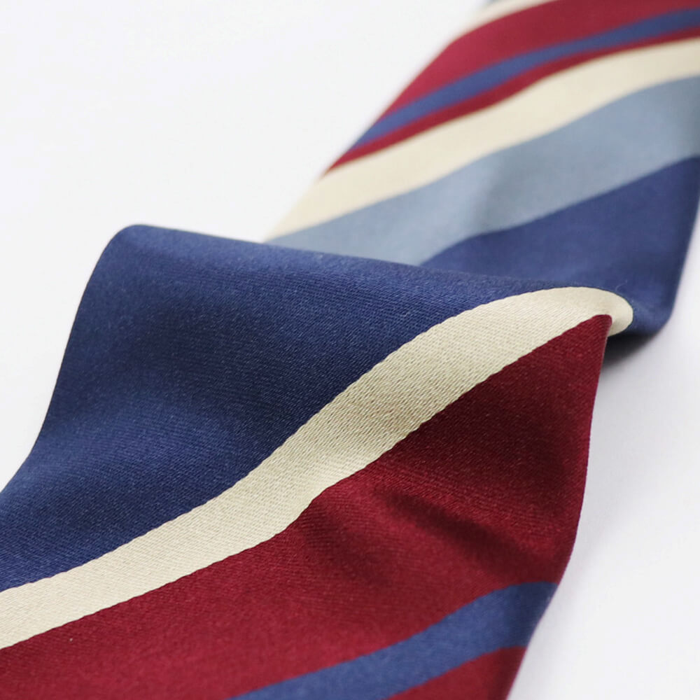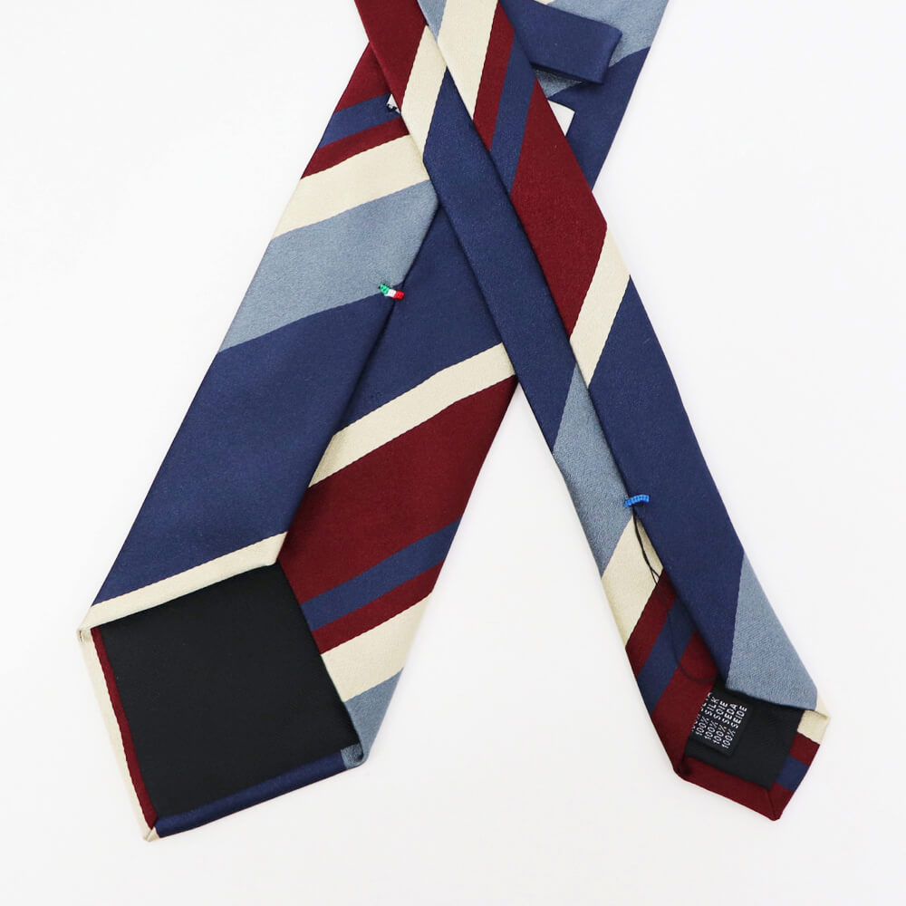 個性的な色柄を美しいシルクと発色で表現した1本。イタリアらしい色使いが魅力的で締め心地も抜群です。クラシカルがベースのネクタイでありながら、大剣裏のかんぬきはイタリアンカラーという遊び心が相まって、物欲を掻き立てられます。 まずは一本、ぜひお試しください。