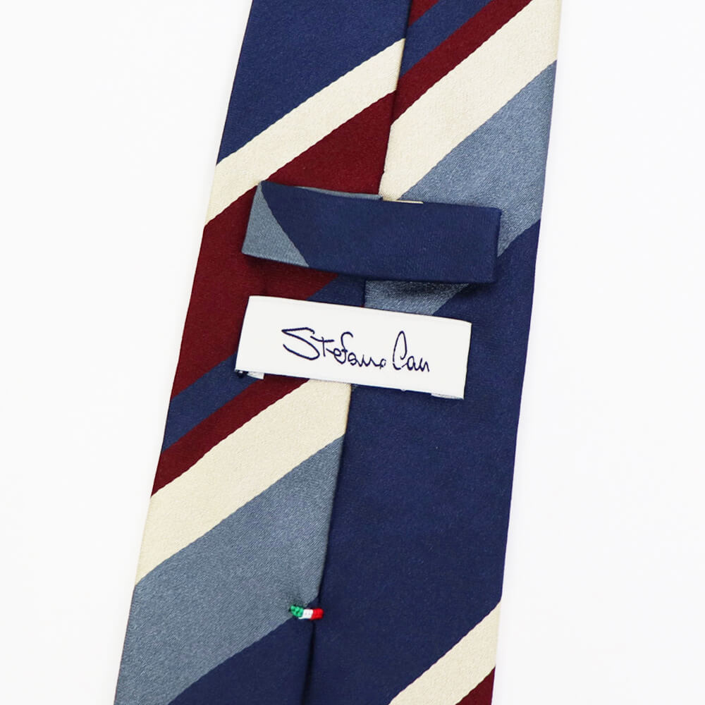 イタリアにおけるシルク産業の聖地、コモの地で、長年にわたって一流ブランドのネクタイを手掛けてきた 実力派デザイナー「Stefano Cau(ステファノカウ)」。クラシックに軸足を置きつつも、その枠に捉われず、 ジャンルや国や時代の境界線を越えたクリエイションを行っていることから、ネクタイ界の鬼才と称されます。 コモ、ロンドン、ニューヨークで25年間、世界を股にかけて培われた経験から、時代の空気を捉えたデザインに 最高の品質と縫製を織り込み、2008年に満を持して自身の名を冠したブランドを立ち上げました。 日本でも数多くのセレクトショップで展開されており、人気ネクタイブランドとしてその地位を確立しています。 “エレガントで遊び心のある着こなし”をコンセプトに、付け心地の良さにこだわり、日常をエレガントに、 そして個性的に演出する、ブランドの世界観が色濃く反映されたコレクションを発表しています。 もともと彼の生家がネクタイの製造を行っていたこともあり、保有する膨大なヴィンテージのアーカイブを モチーフにしたデザインを得意にしています。生地から縫製まで100%メイド・イン・イタリーで、 職人の手作業による伝統的なネクタイ作りを守り続けています。大剣の裏にあしらわれた イタリア国旗をモチーフにしたかんぬきがブランドアイコンになっています。