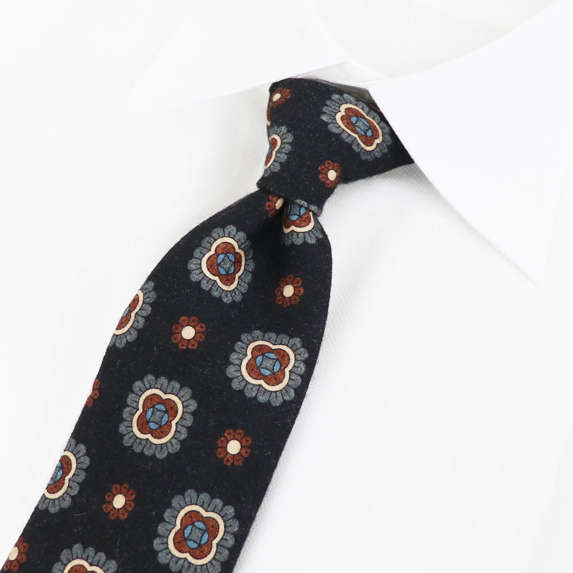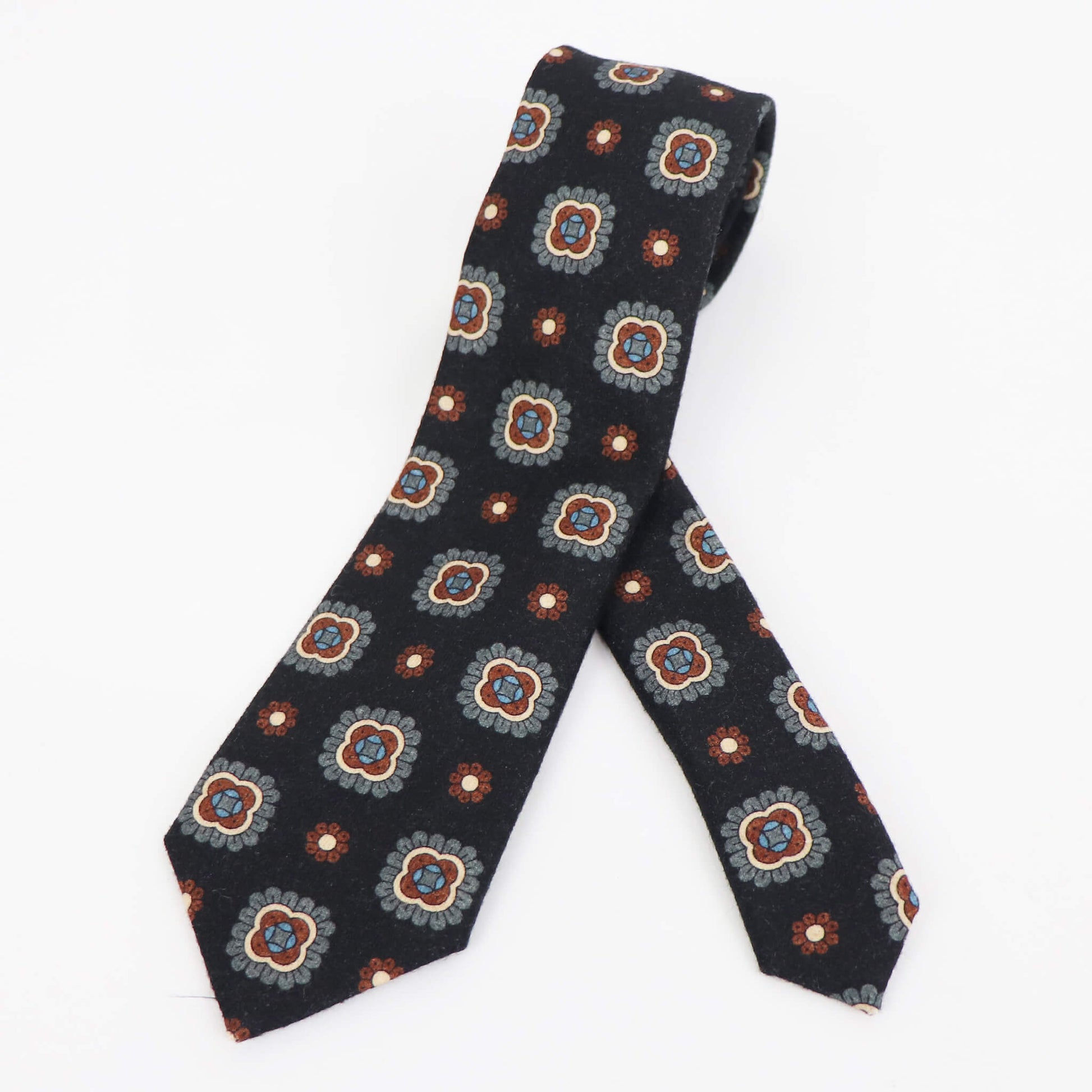 Stefano Cau(ステファノカウ)小紋柄 ウールタイ【ネイビーベース】国内正規品