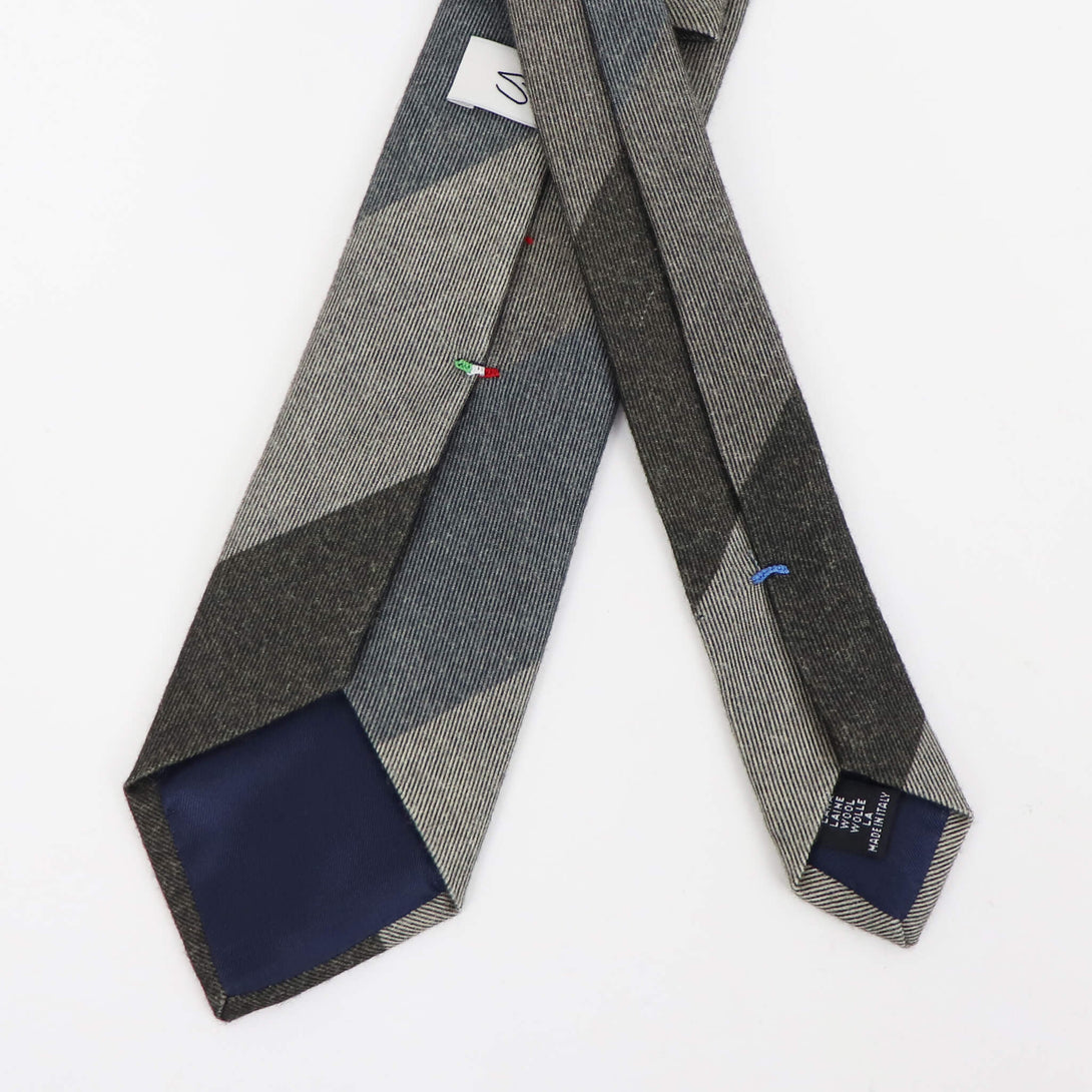 秋冬にしたい、レジメンタルストライプのウールタイ。イタリアらしい色使いが魅力的で締め心地も抜群です。クラシカルがベースのネクタイでありながら、大剣裏のかんぬきはイタリアンカラーという遊び心が相まって、物欲を掻き立てられます。 まずは一本、ぜひお試しください。