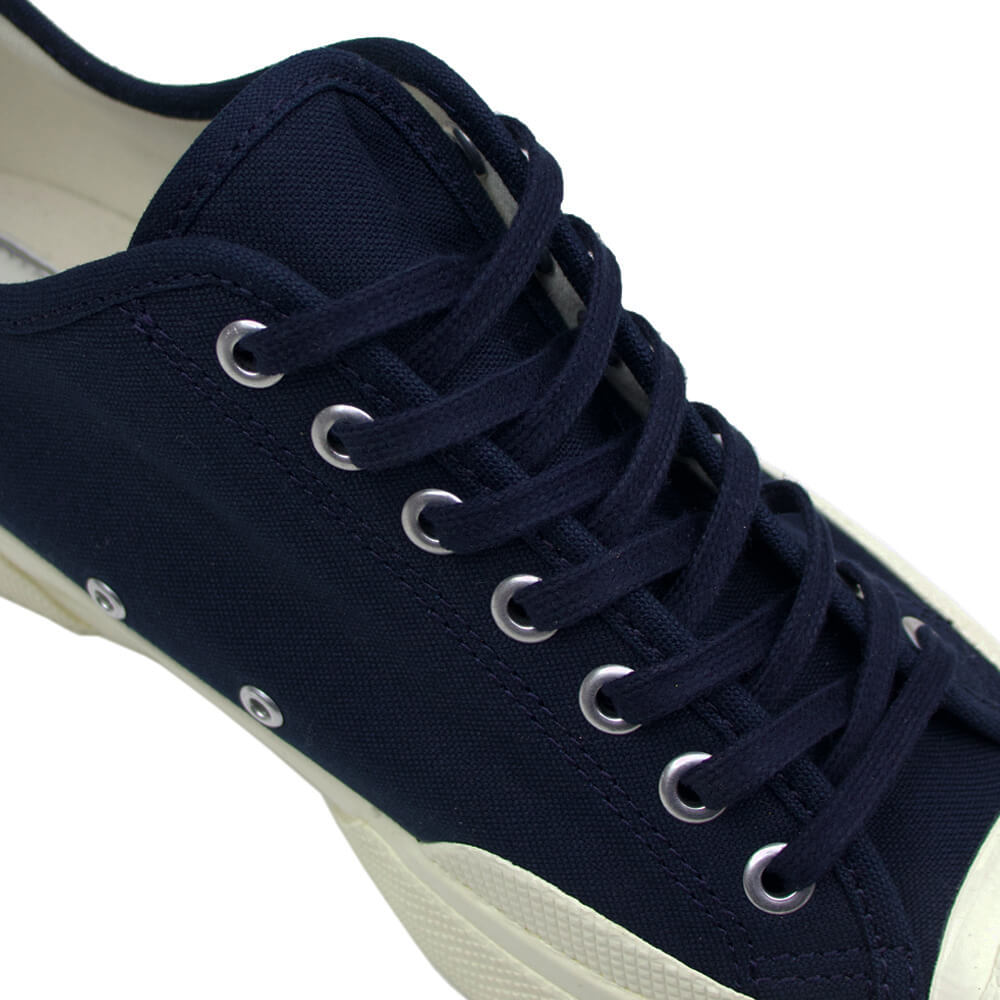 70年代のワークウェアよりイメージをされたシューズとなっております。レースアップのワークブーツをイメージさせるデザインにはボリューム感のあるソールがマッチしておりアッパー素材のモールスキンが上品さを演出する仕上がりとなっています。使用されているモールスキンは岡山の児島で職人によって織られた上質な生地となっており、足当たりも柔らかく、履き心地も優れたビンテージ感漂うワークスタイルの1足です。