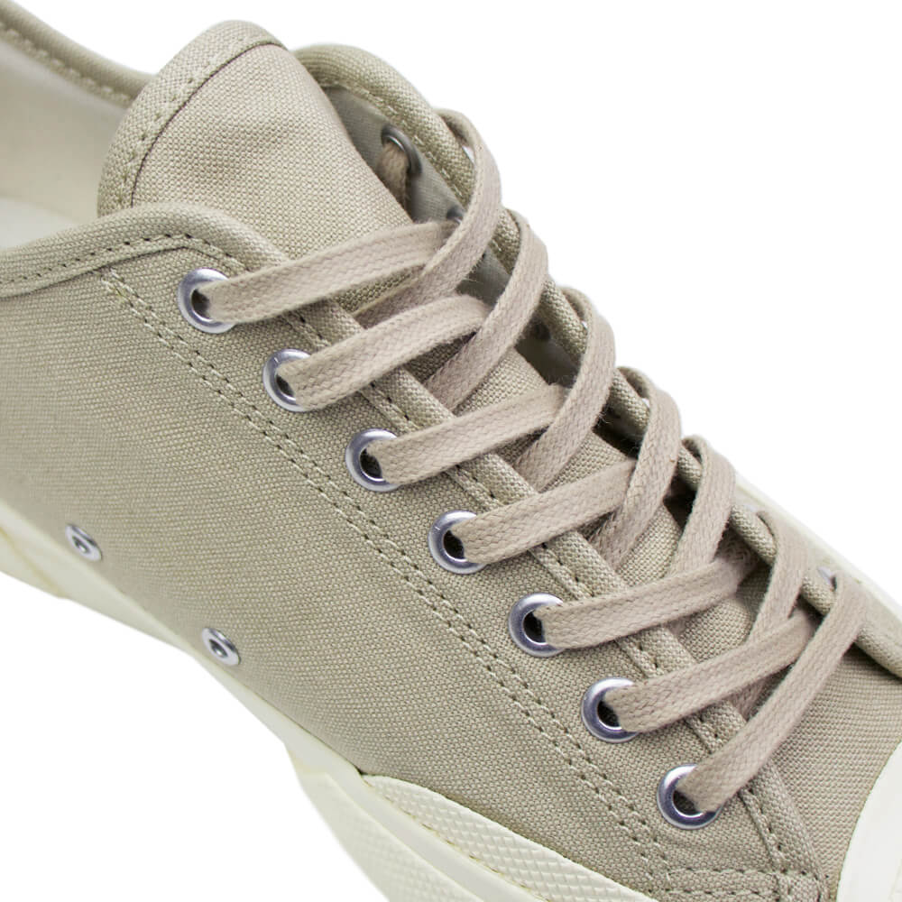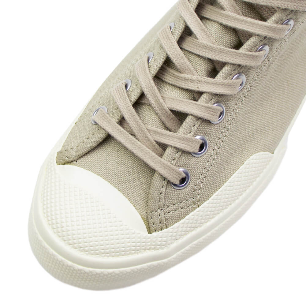 70年代のワークウェアよりイメージをされたシューズとなっております。レースアップのワークブーツをイメージさせるデザインにはボリューム感のあるソールがマッチしておりアッパー素材のモールスキンが上品さを演出する仕上がりとなっています。使用されているモールスキンは岡山の児島で職人によって織られた上質な生地となっており、足当たりも柔らかく、履き心地も優れたビンテージ感漂うワークスタイルの1足です。