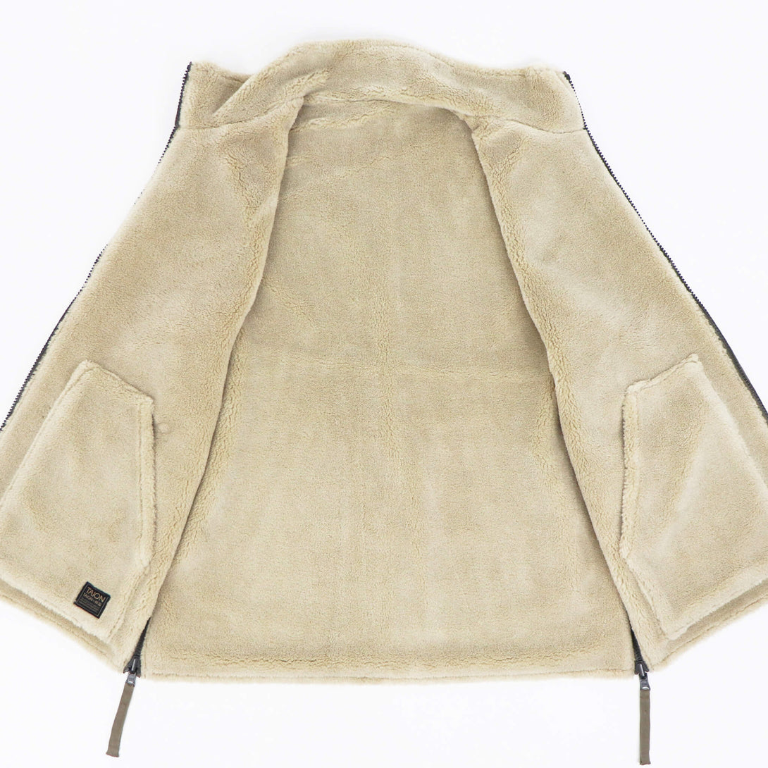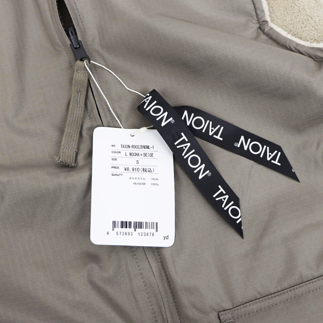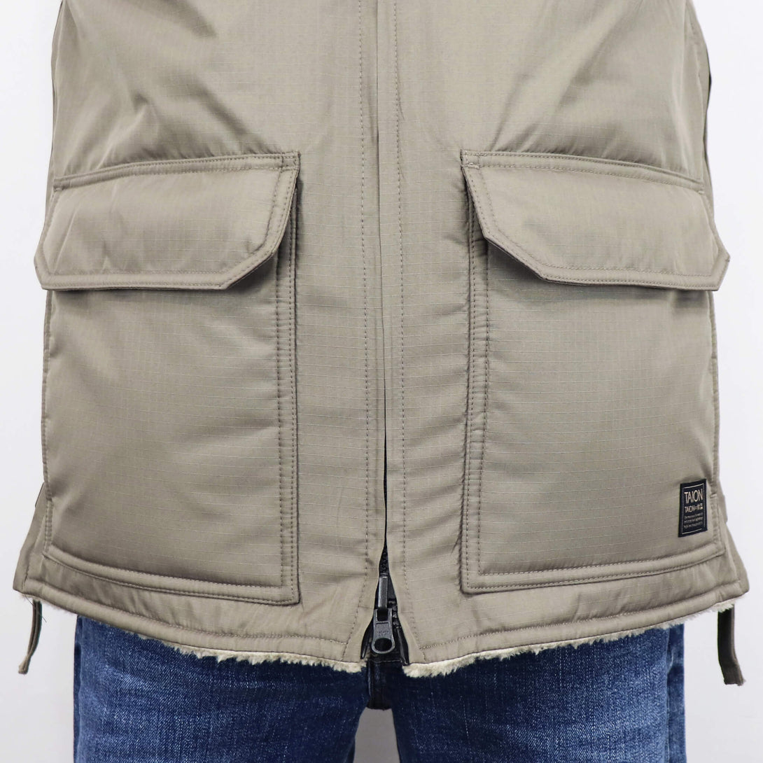表側には、ダウンアイテムにも使われる軽量で高密度なミリタリーリップ生地を採用、 裏側はマイクロボア素材で仕立てており、スタイルに合わせて使い分けられるリバーシブル仕様です。