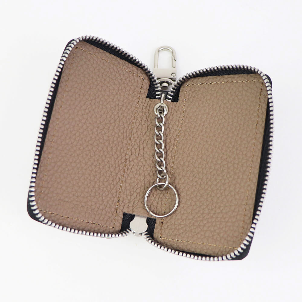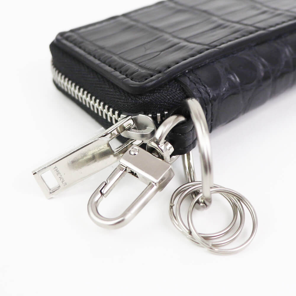 ジッパーの中に車のスマートキーを収納して外側にその他の鍵をつけるタイプです。