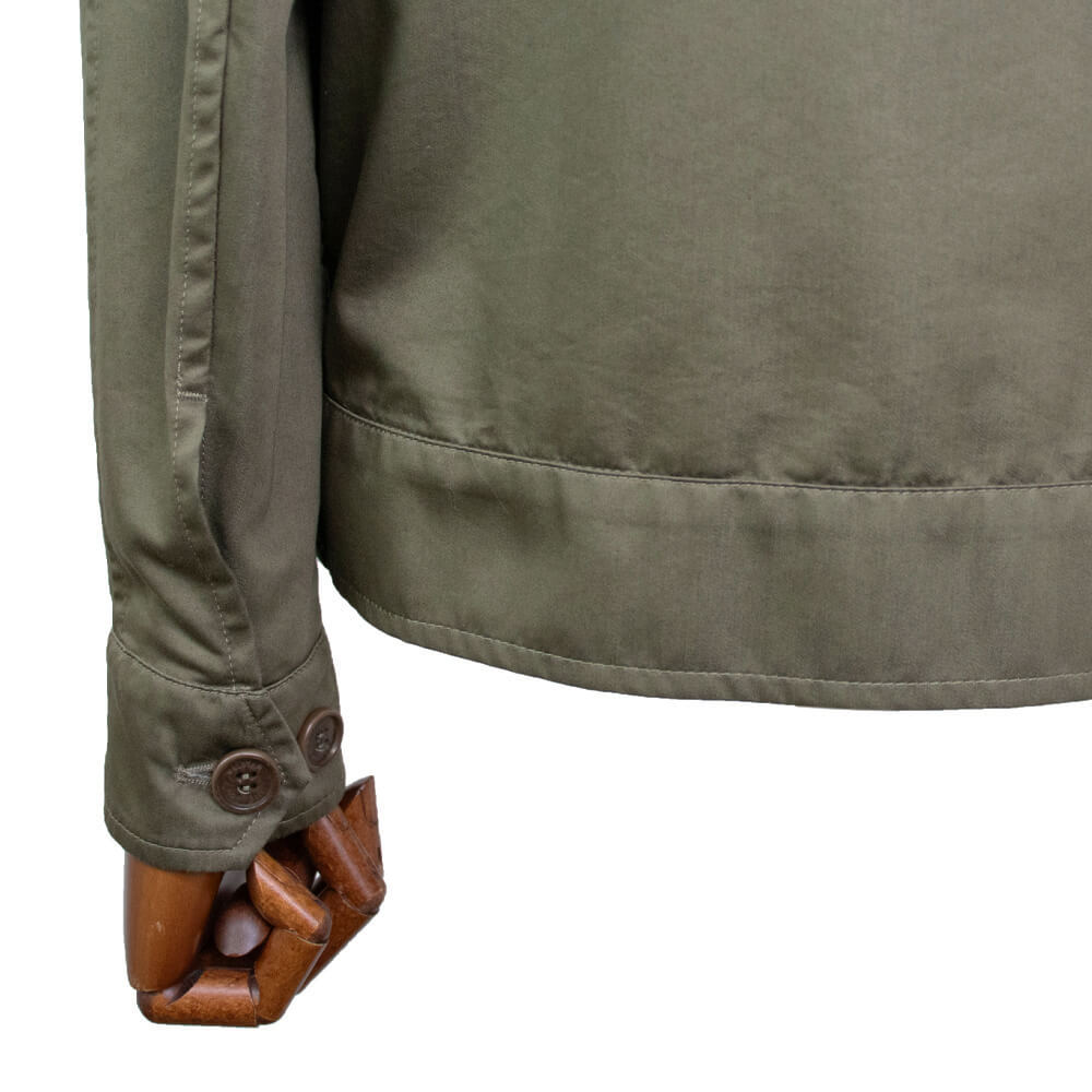 春と秋、季節の変わり目にとても重宝するブルゾンです。素材はコットン・ナイロンで撥水加工がされた少し光沢のあるコットンの風合いを楽しんでいただけます。フラップ付きポケットに加えサイドポケットもついています。袖口はカフス仕様でシャツのように袖まくりができますので、スタイリングに合わせてコーディネートを楽しむ事ができます。