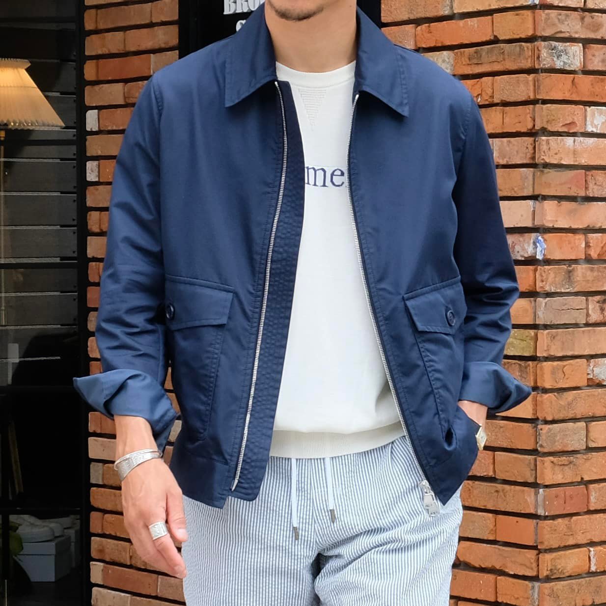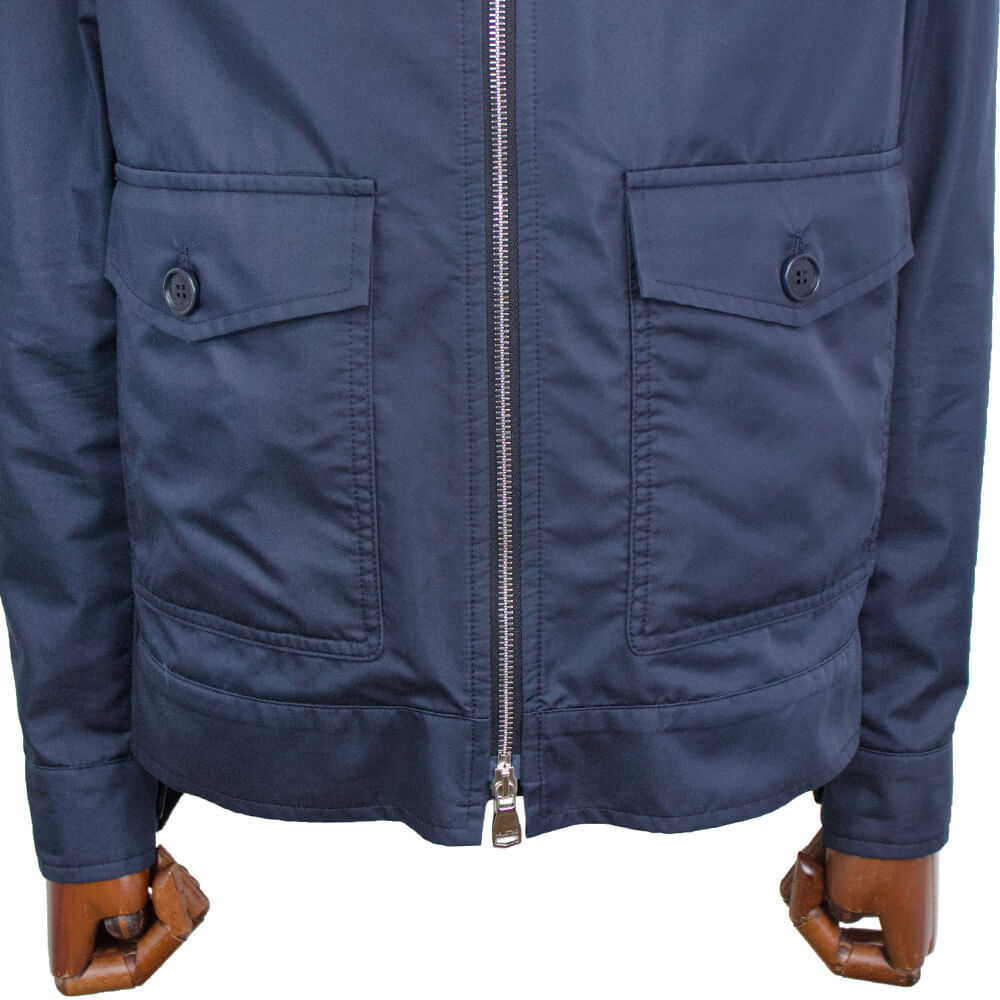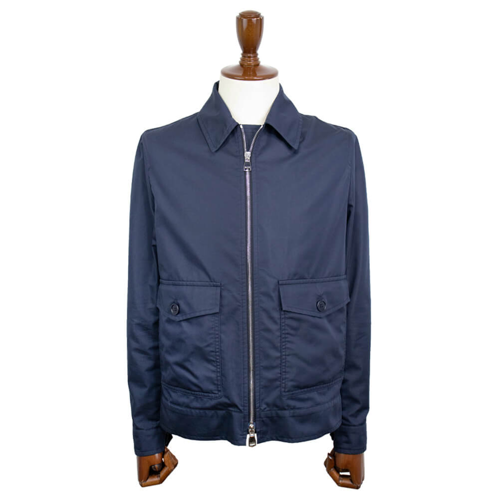 春と秋、季節の変わり目にとても重宝するブルゾンです。素材はコットン・ナイロンで撥水加工がされた少し光沢のあるコットンの風合いを楽しんでいただけます。フラップ付きポケットに加えサイドポケットもついています。袖口はカフス仕様でシャツのように袖まくりができますので、スタイリングに合わせてコーディネートを楽しむ事ができます。