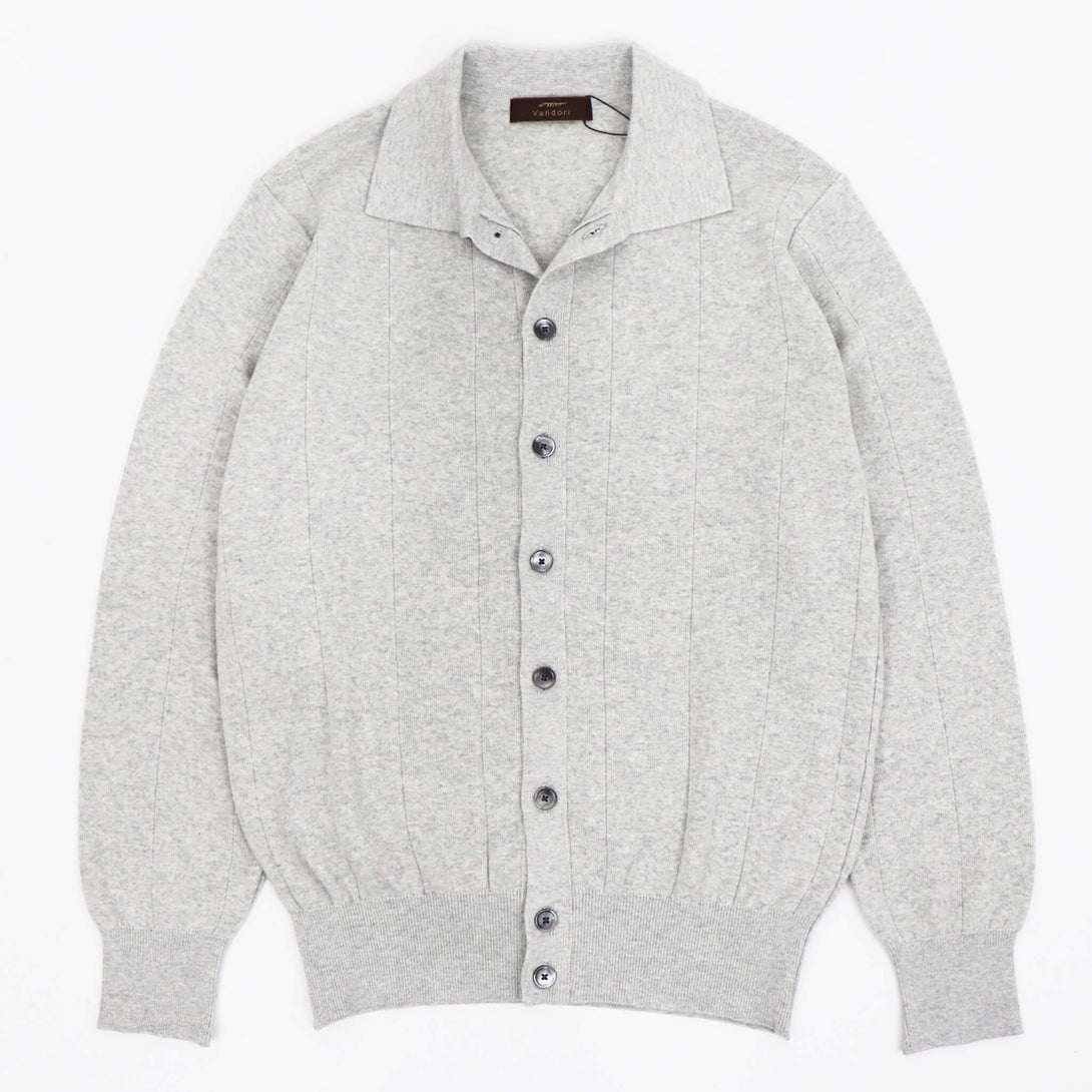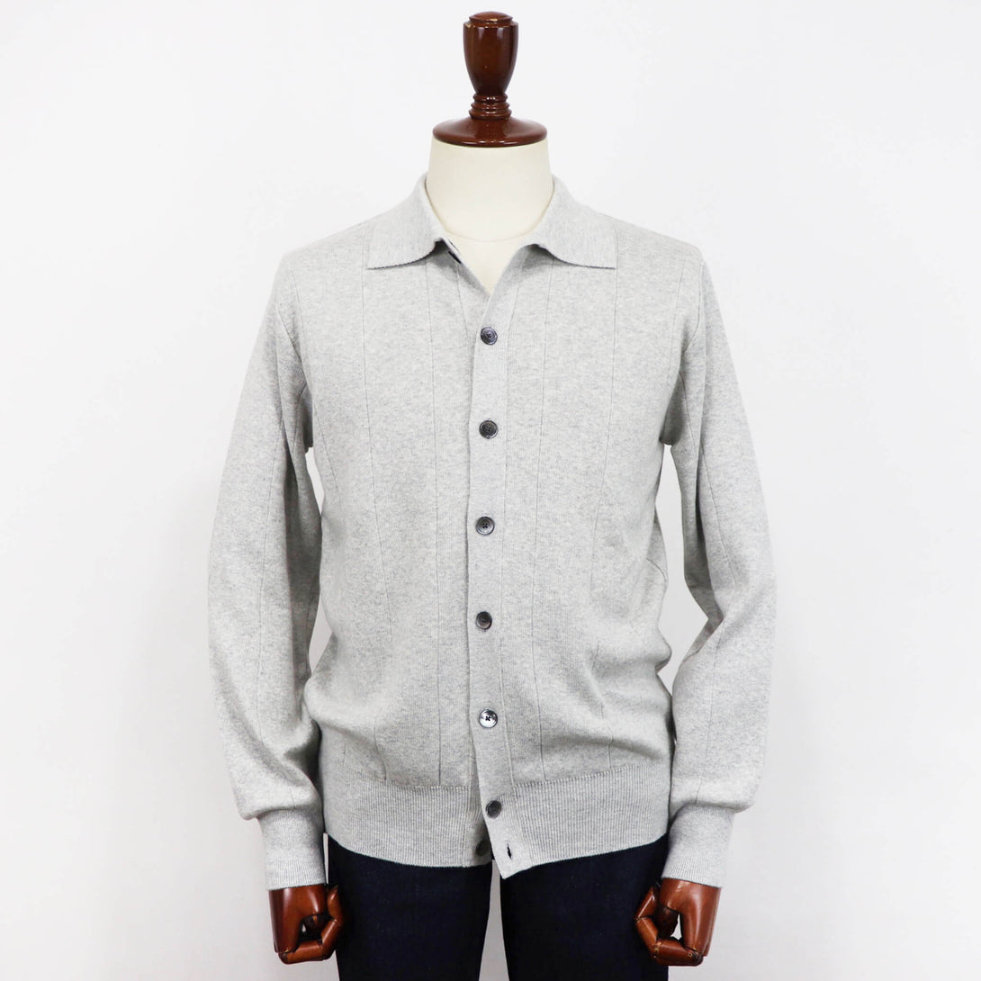 この春夏からニューモデルとして登場した、シャツ型のカーディガン。秋冬はコットン×カシミアの柔らかくしっとりとした肌触りになって登場です。この素材はVandoriでも初めての素材とか。12ゲージのハイゲージで1本取りをしており、しっかりとした透けにくい編み地となっています。総針編みで編んでいる為、伸縮性も抜群で快適な着心地。針抜きという編み地テクニックを採用し、凹凸で立体感のある表情にも注目です。秋は、Tシャツに羽織って季節が進めばハイゲージのニット、クルー・モック・タートルネックと組み合わせは様々。シーズン通して重宝するアイテムだと思います。