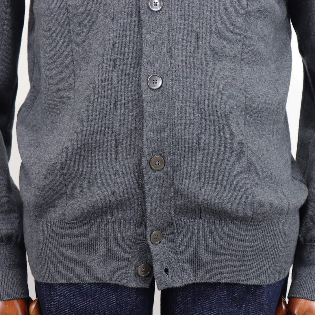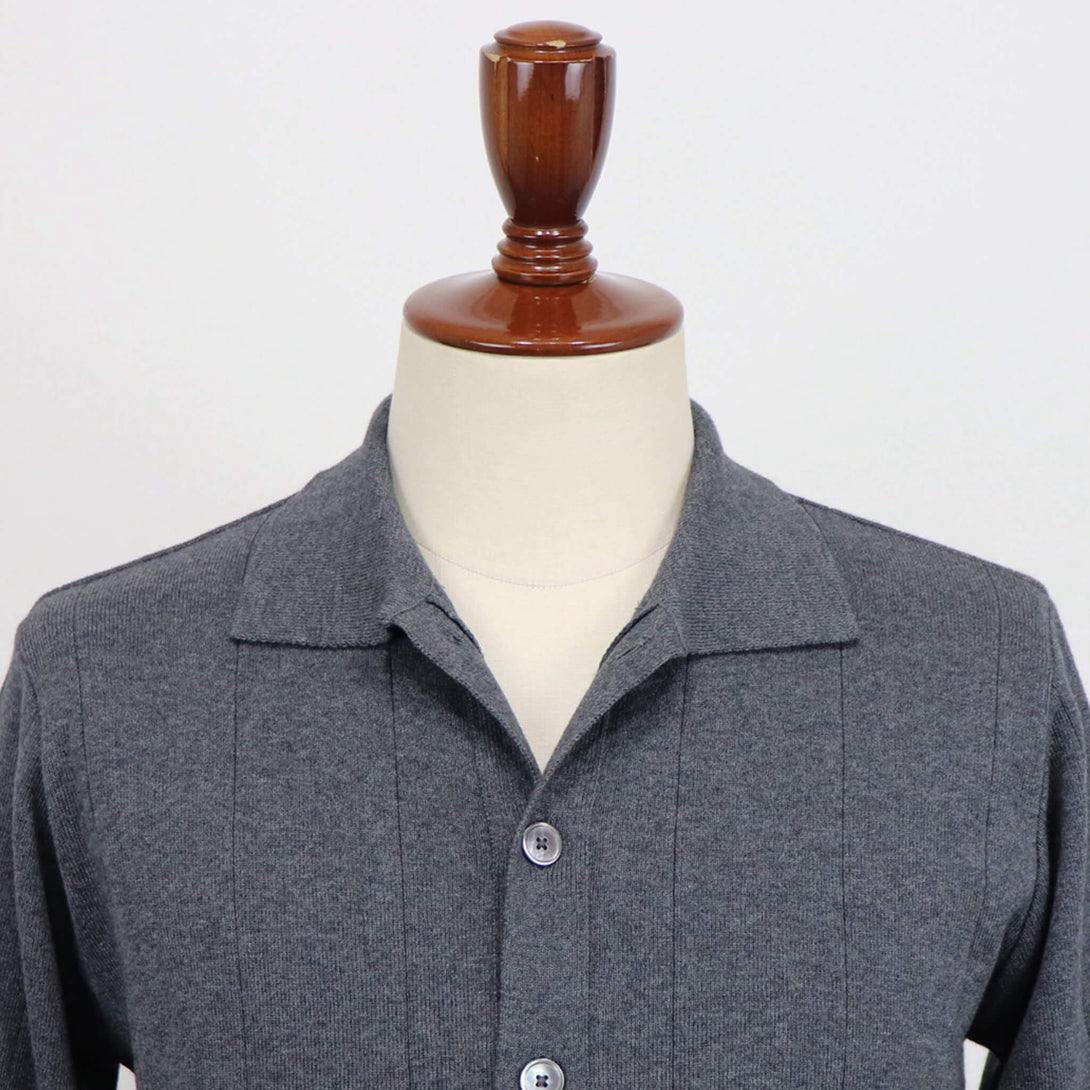 この春夏からニューモデルとして登場した、シャツ型のカーディガン。秋冬はコットン×カシミアの柔らかくしっとりとした肌触りになって登場です。この素材はVandoriでも初めての素材とか。12ゲージのハイゲージで1本取りをしており、しっかりとした透けにくい編み地となっています。総針編みで編んでいる為、伸縮性も抜群で快適な着心地。針抜きという編み地テクニックを採用し、凹凸で立体感のある表情にも注目です。秋は、Tシャツに羽織って季節が進めばハイゲージのニット、クルー・モック・タートルネックと組み合わせは様々。シーズン通して重宝するアイテムだと思います。