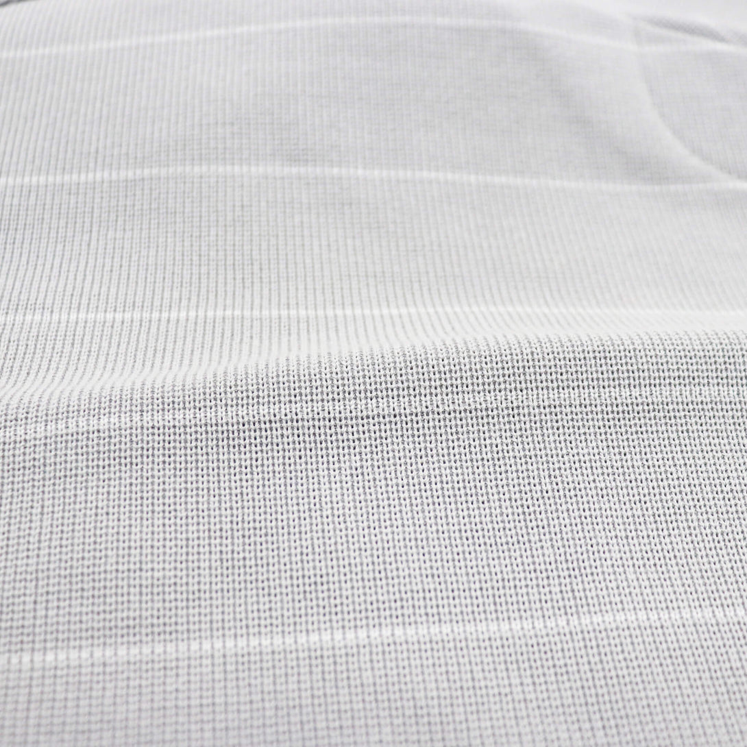 撚糸の際に通常より多く撚りをかけることで程よいシャリ感を加え、春夏に適した快適な着心地を実現しました。イタリア・ミラノ発祥のミラノリブ編みを採用しミドルゲージでしっかりと編み上げることで、布帛のような上品な表情と、ニットならではの伸縮性を兼ね備えています。