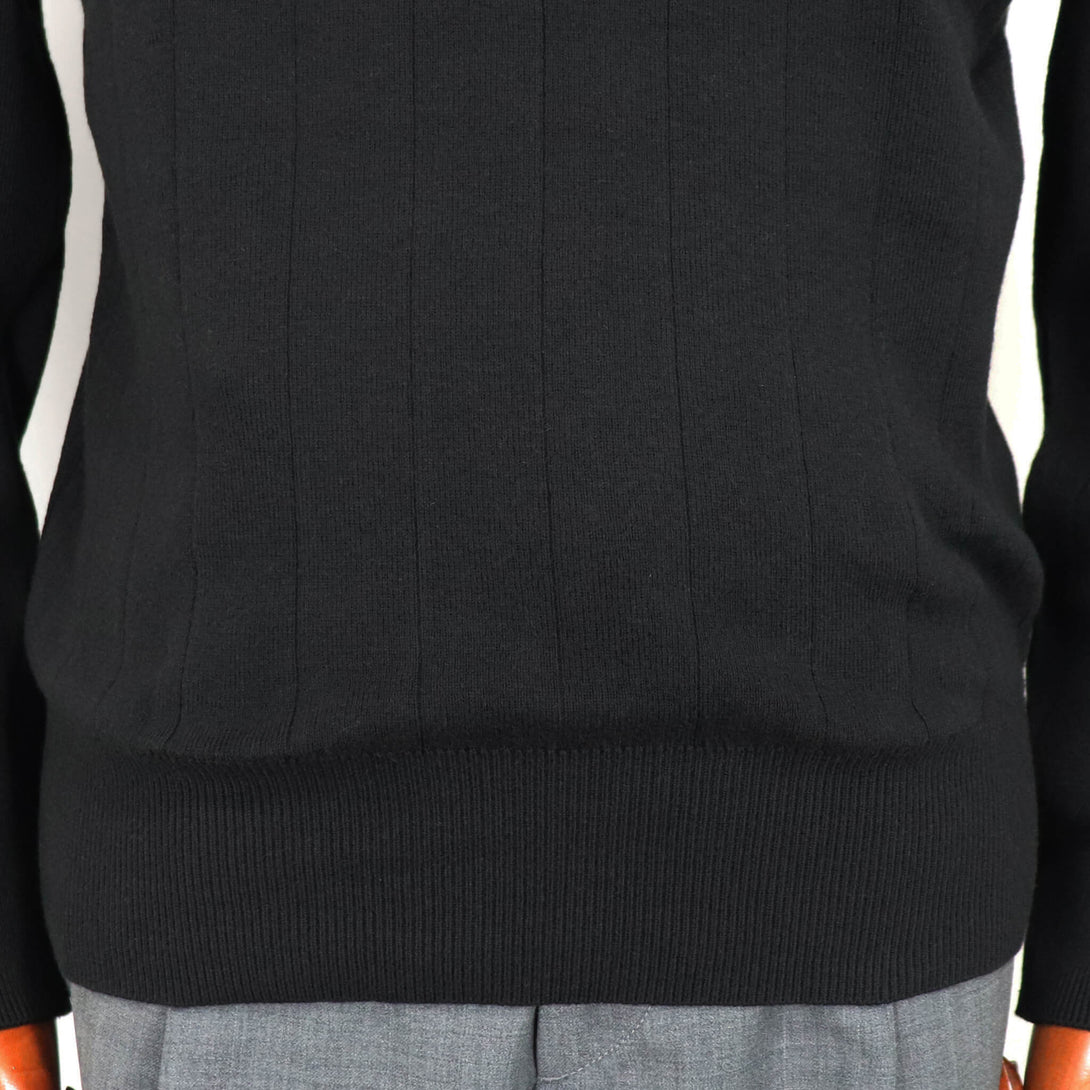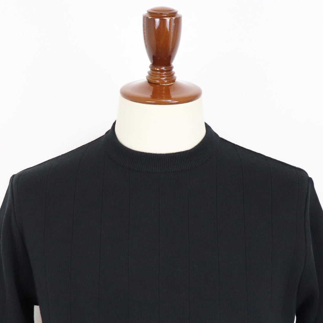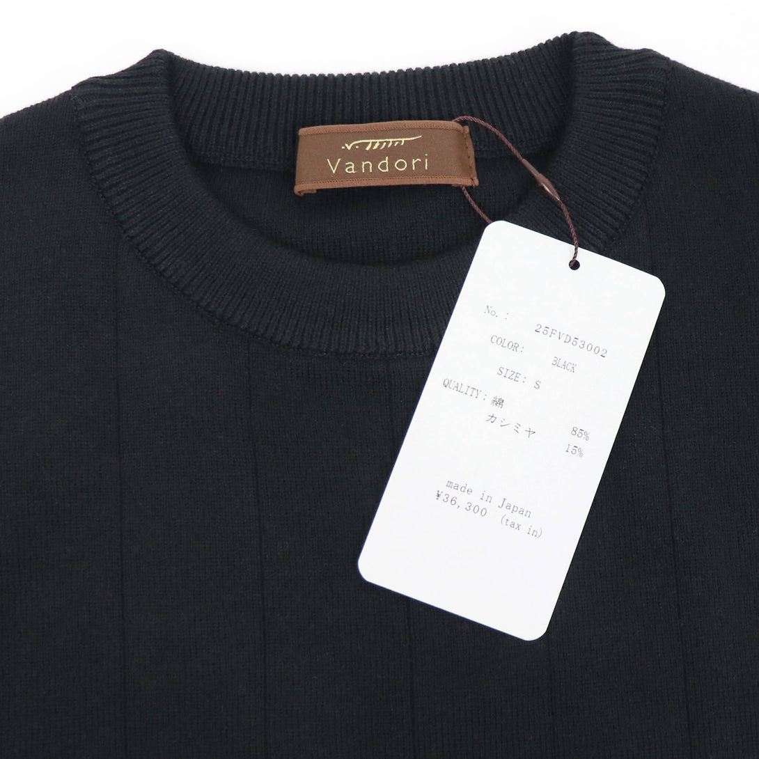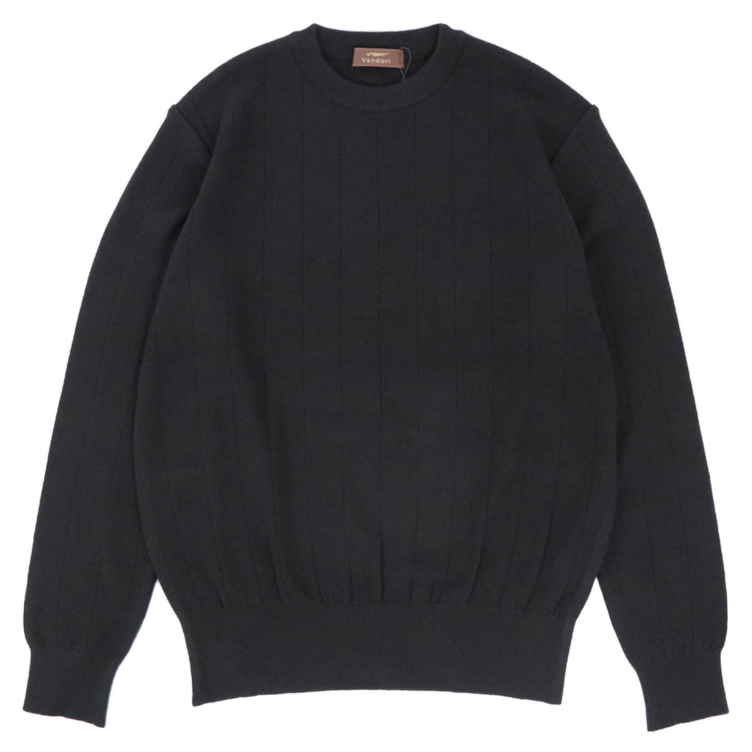 Vandoriより届いた新作は、コットン×カシミヤのクルーネックニット。一般的にハイゲージと言われるニットに比べると少し肉感の厚みがあり、アウターを脱いだ時の主役となる一枚です。素材は 、希少な超長綿にカシミヤを15%ブレンドした糸で編み上げたニット。しなやかで柔らかな肌触りと、上品な光沢をあわせ持つ特別な仕上がりとなっています。伸縮性に優れた快適な着心地に加え、凹凸感のある編み地を取り入れることで、シンプルながらも立体的で洗練された表情に。カラーは、ネイビーとブラックの2色をセレクト。ネイビーは、落ち着いた印象を与え、大人のスタイリングに自然に馴染みます。また、ブラックは色気、艶っぽい印象に。好みのカラーでコーディネートを楽しめるアイテムです。袖と裾をリブ仕様にすることで程よいアクセントを添え、腕まくりしたり、長袖ならではの着こなしもお楽しみください。