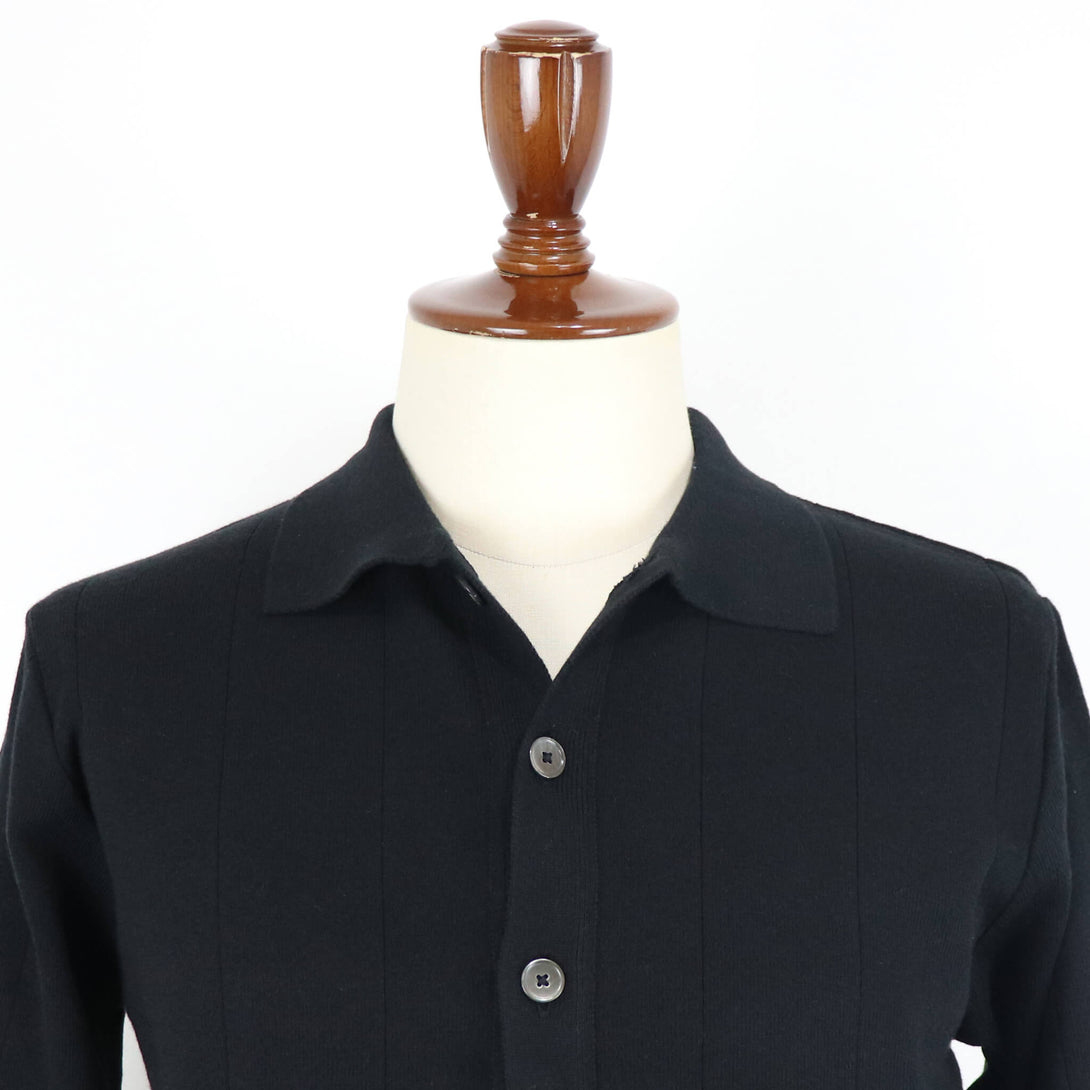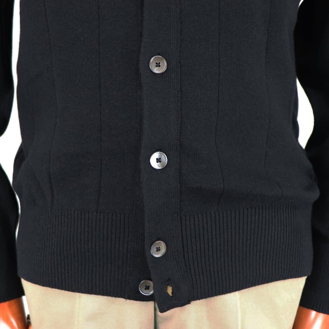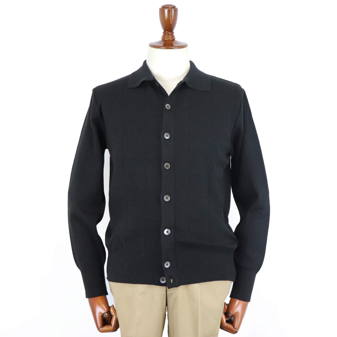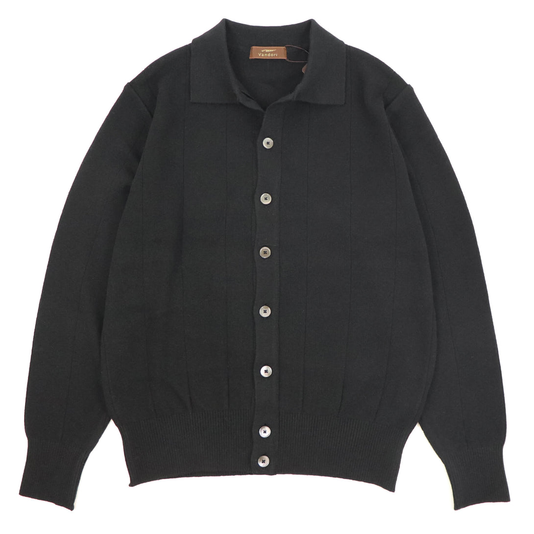 春夏からニューモデルとしてブレイクした、シャツ型のカーディガン。秋冬はコットン×カシミアの柔らかくしっとりとした肌触りになって登場です。この素材はVandoriでも初めての素材とか。12ゲージのハイゲージで1本取りをしており、しっかりとした透けにくい編み地となっています。総針編みで編んでいる為、伸縮性も抜群で快適な着心地。針抜きという編み地テクニックを採用し、凹凸で立体感のある表情にも注目です。秋は、Tシャツに羽織って季節が進めばハイゲージのニット、クルー・モック・タートルネックと組み合わせは様々。シーズン通して重宝するアイテムだと思います。