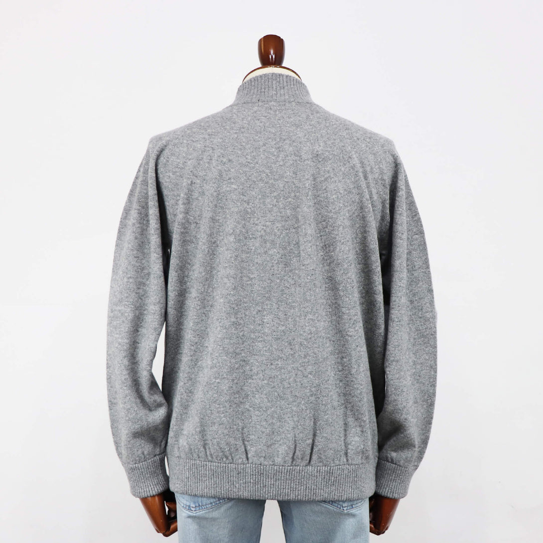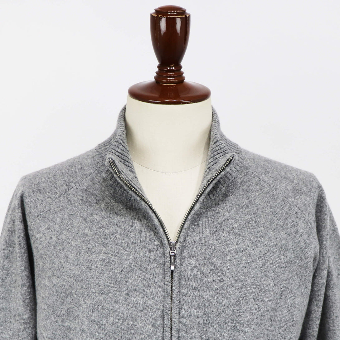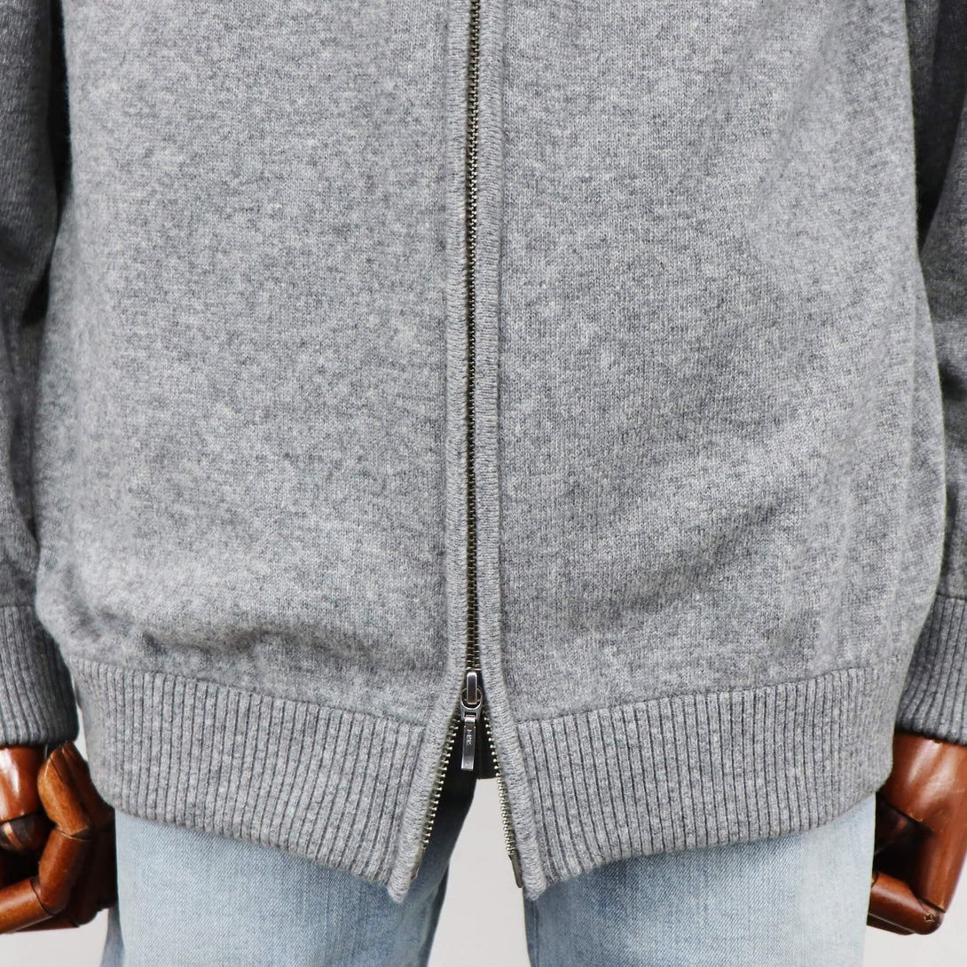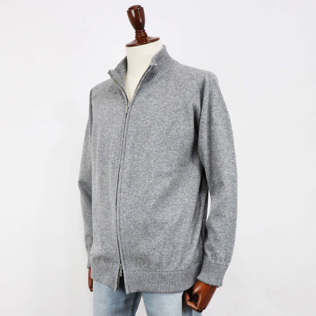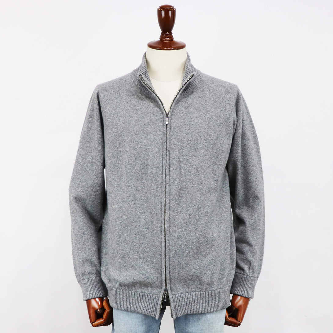 ウール80%・カシミヤ20%の糸に、希少なホワイトカシミヤとオーストラリア産メリノ種のエクストラファインラムズウールを贅沢に混紡した素材を使用。カシミヤのしっとりとした質感を活かすためにウールを厳選し、カシミヤにはない膨らみと弾力性を併せ持つ、暖かく優しい風合いに仕上げています。柔らかさと高い保温性を備えたニットブルゾンは、ジャケット使いにもカーディガン使いにも活躍する万能な一着で、すっきりとしたハイネックのジップアップデザインを採用し、ダブルジップ仕様によって着脱やスタイリングの幅が広がります。上質素材ならではの肌当たりと品の良い佇まいは、冬の装いに奥行きをもたらし、タートルネックを合わせたニットオンニットのコーディネートもよく映えます。