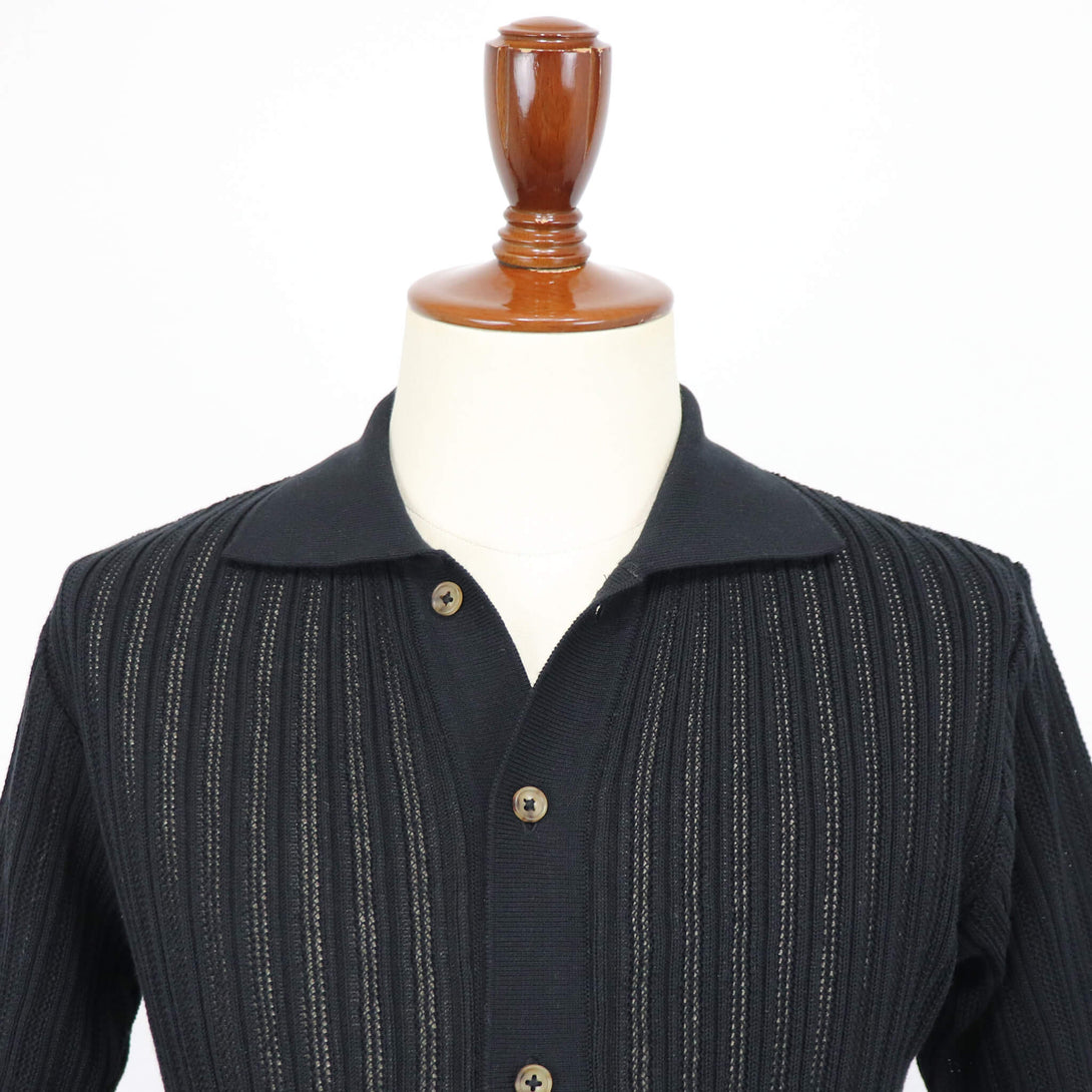 今季のVandori(ヴァンドリ)新作、透かし編みコットンニットシャツカーディガン。素材は、綿特有の毛羽を抑えた糸を使用し、肌にすっと馴染むような滑らかさと、涼やかな着心地を実現。襟元と前立てはやや太めにデザインし、ハリのある編地で仕上げることで襟を立てても美しく決まるシルエットに。ストライプ調の透かし柄は涼しげでありながらも透けすぎない絶妙なバランスとなっています。シンプルな中にも表情を感じられ、カジュアルにも上品にも幅広く合わせやすくこれからの季節にぴったりの1着。コーディネートは、Tシャツや、タンクトップとの組み合わせをお楽しみください。プールサイドでしたら、一枚での着用もありかも?!