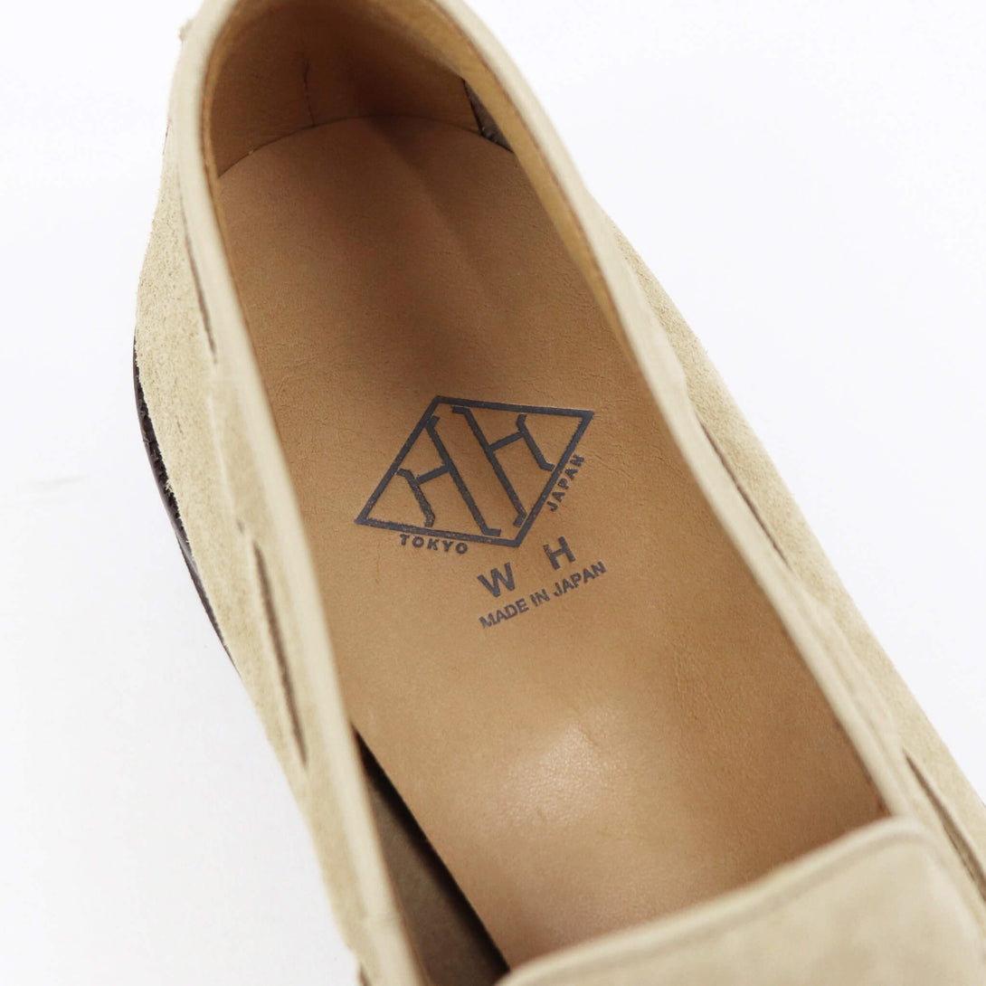 「WH(ダブルエイチ)」は、世の中に数々の名靴を送り続けているシューズデザイナーの坪内浩と、メディアの枠を越えて活躍するファッションディレクターの干場義雅という、二人によって誕生したメイド・イン・ジャパンのシューズブランドです。 ブランド名の「WH」は、二人のイニシャル「H」からとっています。坪内浩がこれまで培ってきた靴作りの技術と経験。干場義雅が様々なメディアで提案してきたラグジュアリーなライフスタイル。二人の感性、二人の経験のベストミックスによって生まれました。様々な国々の靴を見続けてきた二人が、「東京発の靴を世界へ」という想いのもと、「どこの国にも属さないようなインターナショナル・ベーシック」を目指し作られています。