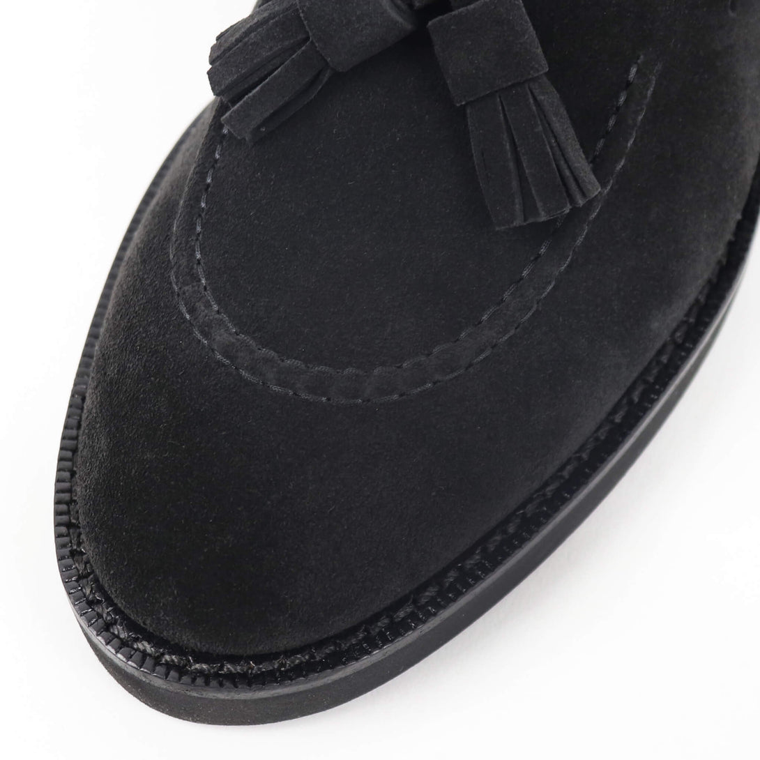 アッパーに英国タンナーチャールズFステッド社ヤヌスカーフ(銀付きスウェード)を使用。しっとりとした手触りと、柔らかい革を採用し、ライニングを貼らないアンライニング仕様となります。アッパーに柔らかい革を使用し、アンライニングにすることで、驚くほどのやわらかさを実現しています。アッパーは柔らかいのが特徴ですが、履くとバシッと決まるというのがこのシューズの特徴。また、やわらかさだけではなく、軽さもポイント。ソールはWHオリジナルのソールとなります。グリップ力、衝撃吸収力、軽量、クッション性に優れたソールです。ストレッチの効いたイージー系のセットアップや、パンツとの相性は抜群です。
