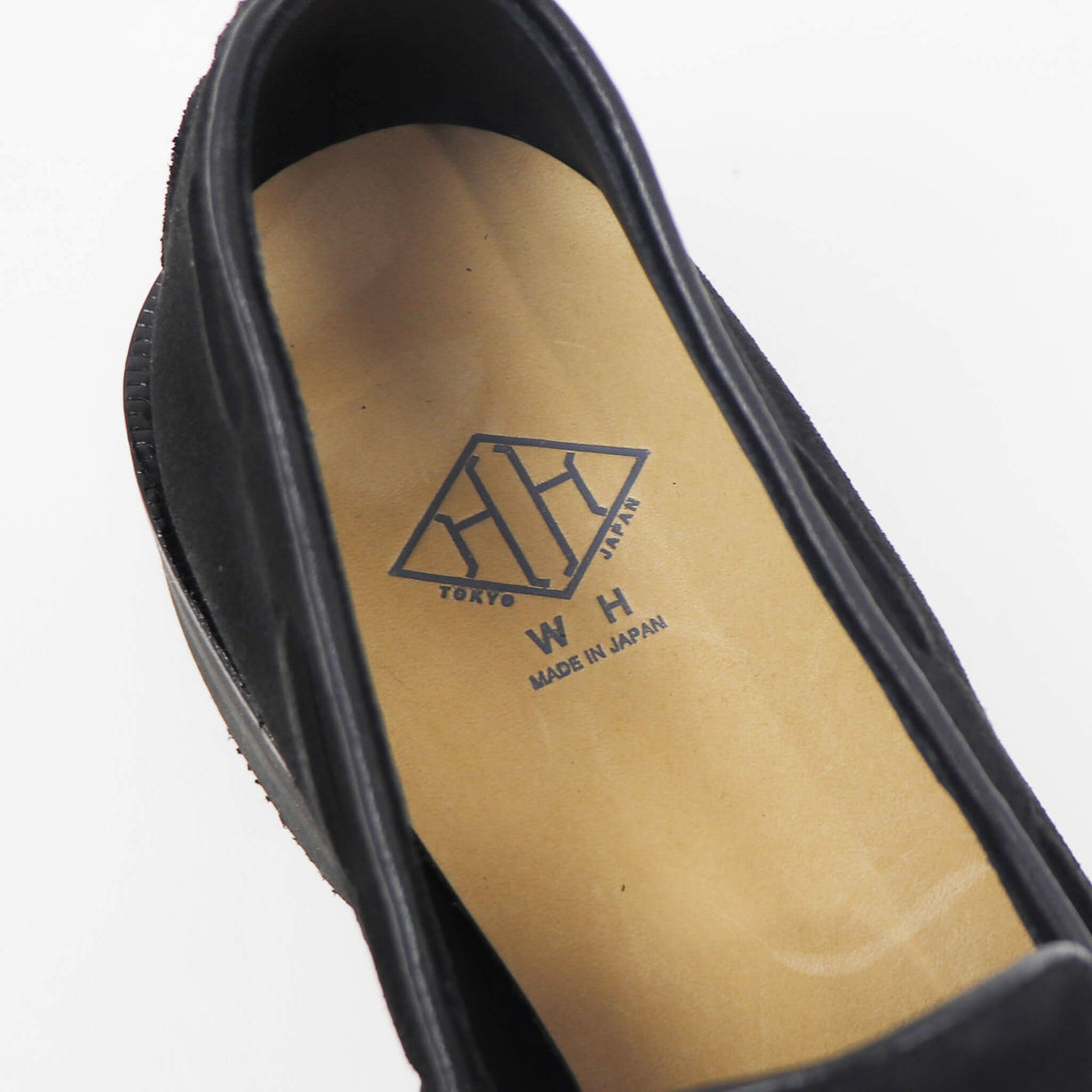 「WH(ダブルエイチ)」は、世の中に数々の名靴を送り続けているシューズデザイナーの坪内浩と、メディアの枠を越えて活躍するファッションディレクターの干場義雅という、二人によって誕生したメイド・イン・ジャパンのシューズブランドです。 ブランド名の「WH」は、二人のイニシャル「H」からとっています。坪内浩がこれまで培ってきた靴作りの技術と経験。干場義雅が様々なメディアで提案してきたラグジュアリーなライフスタイル。二人の感性、二人の経験のベストミックスによって生まれました。様々な国々の靴を見続けてきた二人が、「東京発の靴を世界へ」という想いのもと、「どこの国にも属さないようなインターナショナル・ベーシック」を目指し作られています。