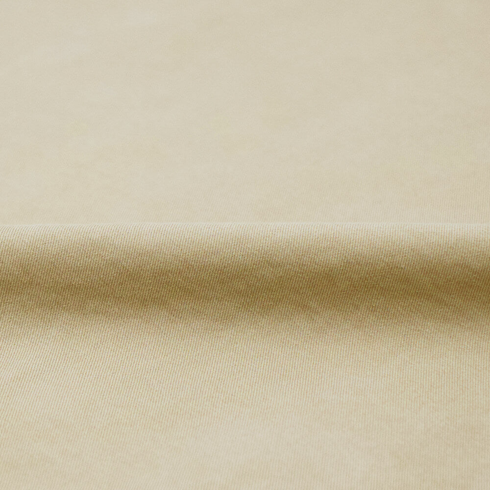 新作のクルーボンバーは、ボクシーなシルエットと後染め加工によるニュアンスのあるカラー表現が相まって、武骨なディテールながらスタイリッシュな一着です。素材には、起毛感のあるピーチドコットン素材を使用し、滑らかな手触りと着心地が魅力です。襟裏にはミリタリーステッチを施し、襟を立てて着用する際にも絶妙な張りを襟部分に持たせます。高級感のあるシルバージップはダブルジップ仕様。フロントには容量の大きなフラップ付きポケットとサイドから手を入れられるハンドウォーマーの一体型ポケットが備わります。ミリタリーテイストがあり、スタイリッシュなのにどこか肩の力の抜けたスタイリングを叶えてくれます。