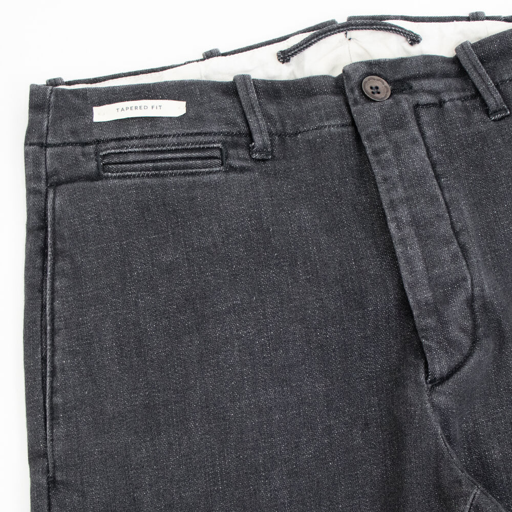このモデルの最大の特徴は使い易い汎用性の高さです。デニムとしてカジュアルに穿ける気軽さと、ジャケットなどと合わせるドレッシーなスタイルにも収まる上品な面持ちを併せ持っています。